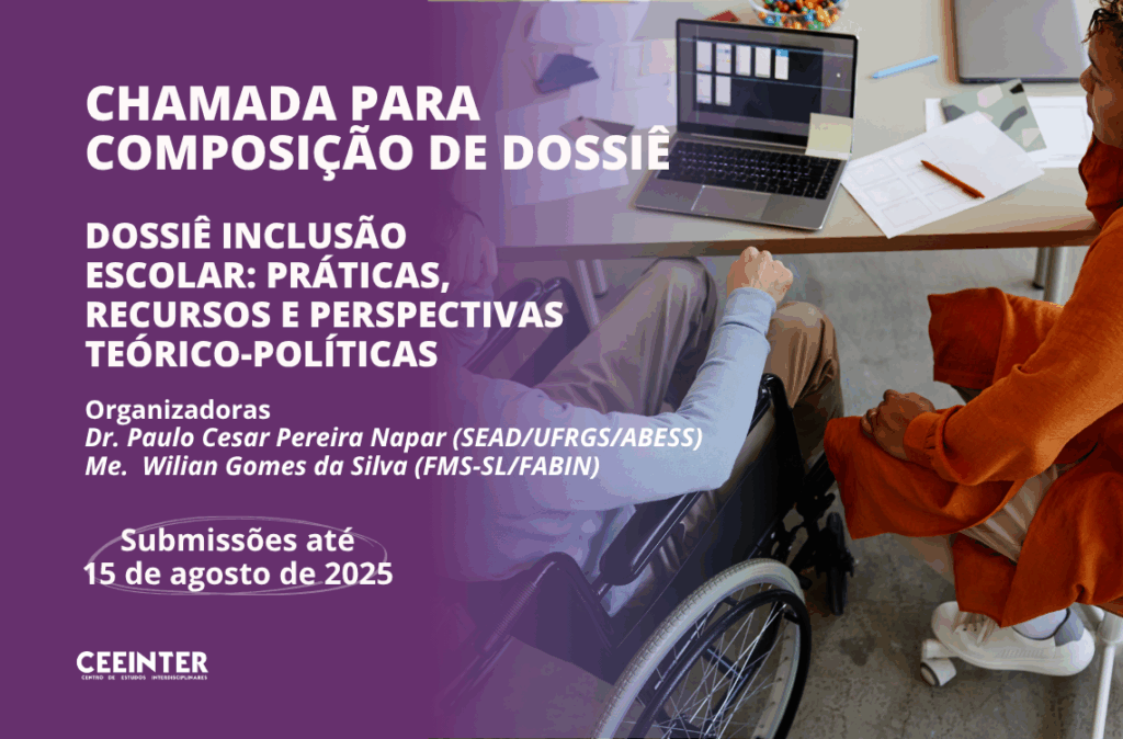 O Centro de Estudos Interdisciplinares (CEEINTER) convida pesquisadoras(es), profissionais da educação, estudantes e militantes da causa inclusiva a submeterem trabalhos para o dossiê temático “INCLUSÃO ESCOLAR: PRÁTICAS, RECURSOS E PERSPECTIVAS TEÓRICO-POLÍTICAS”.