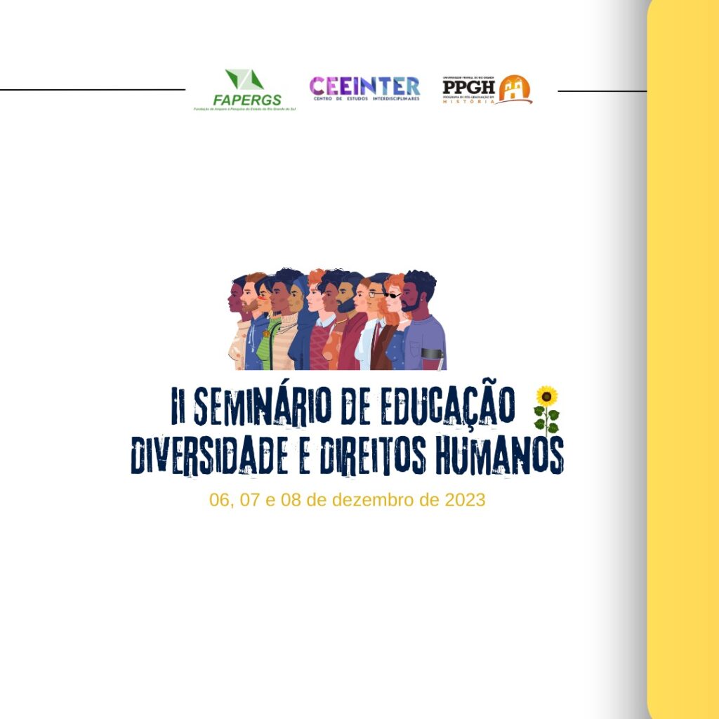 Realizado de 06 a 08 de dezembro de 2023, em formato on-line, o evento foi promovido pelo Programa de Pós-Graduação em História da Universidade Federal do Rio Grande (FURG) e pelo Centro de Estudos Interdisciplinares (CEEINTER), com apoio da FAPERGS. O seminário teve como foco discutir diversidade, educação em direitos humanos e o papel da escola pública na garantia do direito à educação, especialmente para estudantes marcados por diferenças sociais. Também propôs reflexões sobre os impactos de movimentos conservadores na educação e os desafios impostos à abordagem de temas emergentes no espaço escolar.