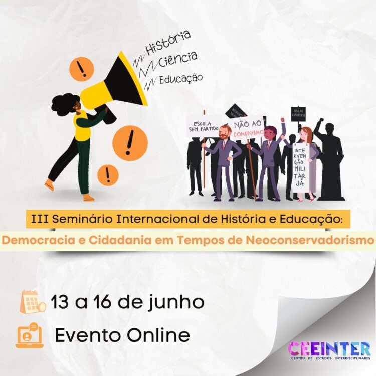Com o tema “Democracia e Cidadania em Tempos de Neoconservadorismo”, o evento foi realizado de 13 a 16 de junho de 2023, em formato remoto, com organização do Centro de Estudos Interdisciplinares e apoio da Associação de Pós-graduandos em História da Universidade de Passo Fundo. O seminário teve como objetivo debater os desafios da produção do conhecimento em Educação e História diante do avanço do neoconservadorismo, promovendo apresentações de trabalhos, minicursos, palestras e mesas de debate voltadas ao fortalecimento da democracia, da cidadania, da ciência e da instituição escolar.